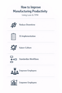 Manufacturing productivity is not just about working harder—it’s about building systems that make performance predictable. In our experience at Faber Infinite Consulting, factories that adopt structured daily work management with Lean and TPM see measurable gains in output, cost control, and workforce engagement within months.