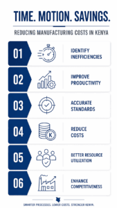 Manufacturers across Kenya are under increasing pressure to reduce costs while maintaining quality and delivery timelines. Rising labor costs, operational inefficiencies, and global competition make this challenge even more complex. Yet, many businesses overlook one of the most practical and proven tools for cost reduction—time and motion study.